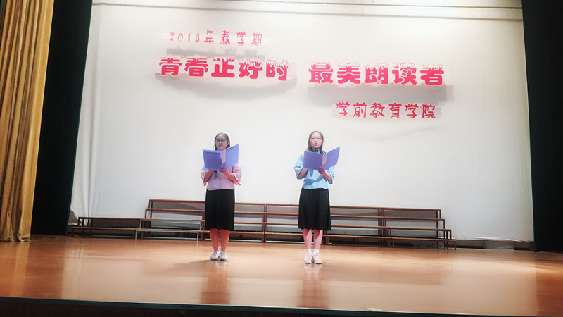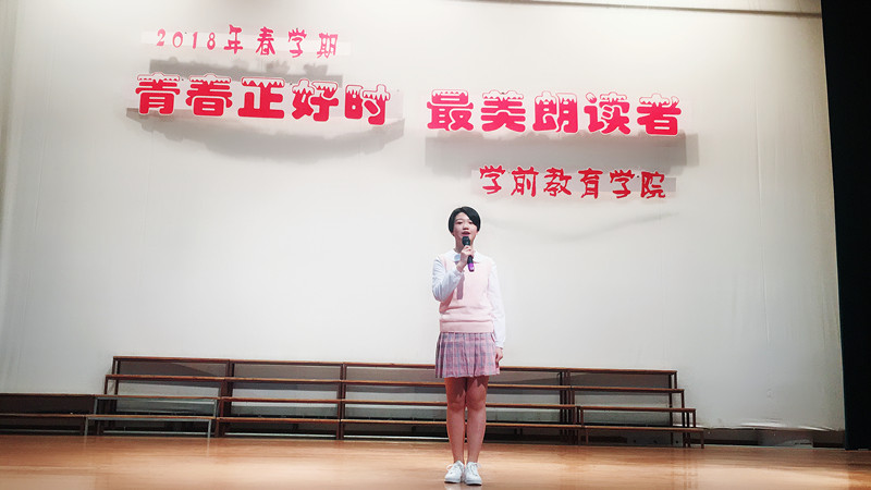 为了传诵经典佳作、弘扬优秀文化,2018年3月21日下午16时30分,学前教育学院举行了“学习在学前,成长在幼专”系列活动之17级最美朗读者比赛,比赛在南北两个校区的报告厅分别举行,来自17级16个班的32位朗读者参加了本次比赛。