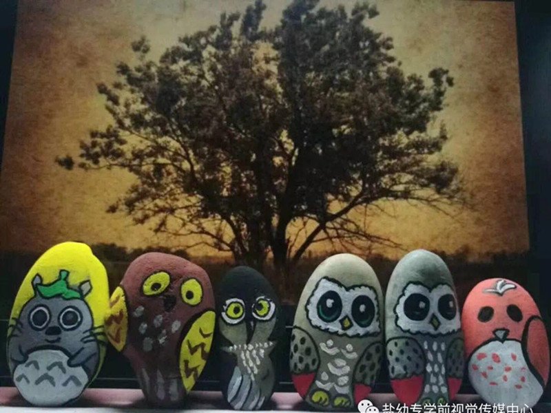 为提升学生美术技能水平、丰富学生课余文化生活,我院组织了“墨香青春,画韵学前”系列书画节活动。针对各年级教学进度与学生特点,我院在16级高专班开展了“随心笔触,石头彩绘”创意美术活动,以培养幼师生的环保意识和创新意识,调动学生的手工创意积极性,挖掘学生的艺术潜能。