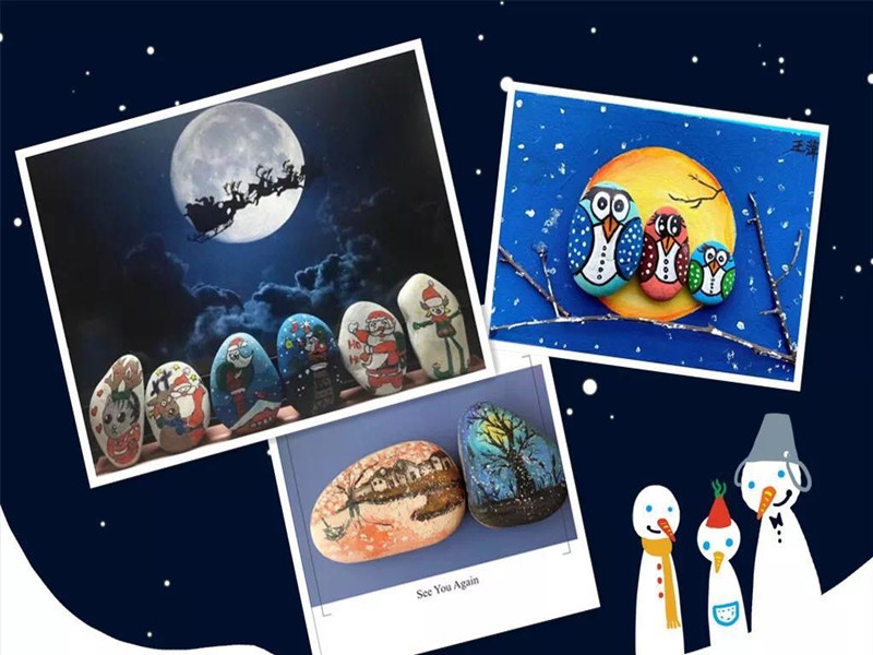 石头在大自然中既常见、且平凡,但当同学们将它拾起,用颜料给它们换上新面貌,它们就变得独一无二、颜值极高啦。华美的欧式建筑,写意的风景山水,雅致的梅兰竹菊,可爱的甲虫、猫头鹰、梦幻星空、圣诞老人、梅花鹿……一幅幅作品取材于自然,巧用其形、加以绘饰,既有天然之美,又具匠心之韵。