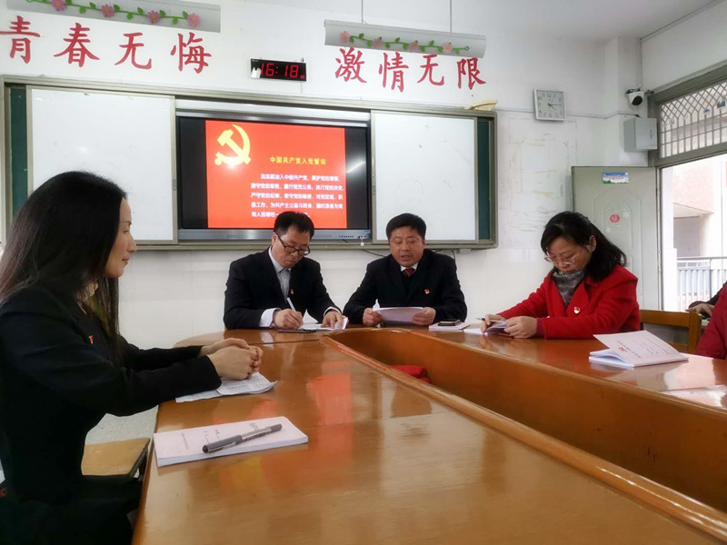 按照议程,支部全体党员起立奏《国际歌》。随后,王欣荣同志宣读了学校党委关于批准中共预备党员的通知。在祁海艳同志的带领下,29位预备党员面向党旗,举起右拳进行了庄严的入党宣誓,支部全体党员重温了入党誓词。