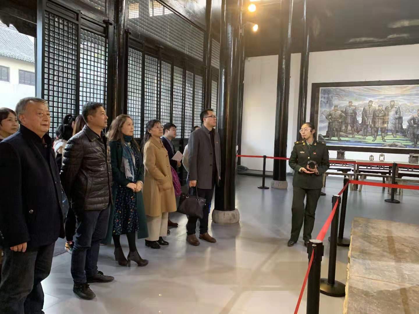 在展厅,大家面向党旗,庄严地重温入党誓词。随后跟随讲解员的介绍,大家全面地了解了新四军在华中地区抗日的光辉奋斗史,展厅里一幅幅久远的照片,一尊尊英烈的雕像,一件件斑驳的物件,无不让全体党员深受感动,政治理想得到升华,政治信念无比坚定。