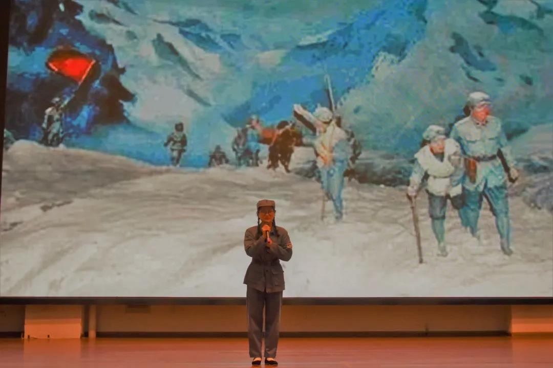 学前1912班唐菱菱给大家带来的《丰碑》,深深打动了观众,本可以活下来的红军军需处长,在冰天雪地里,他把衣物给了其他的战士们,自己冻成了一座永恒的丰碑。