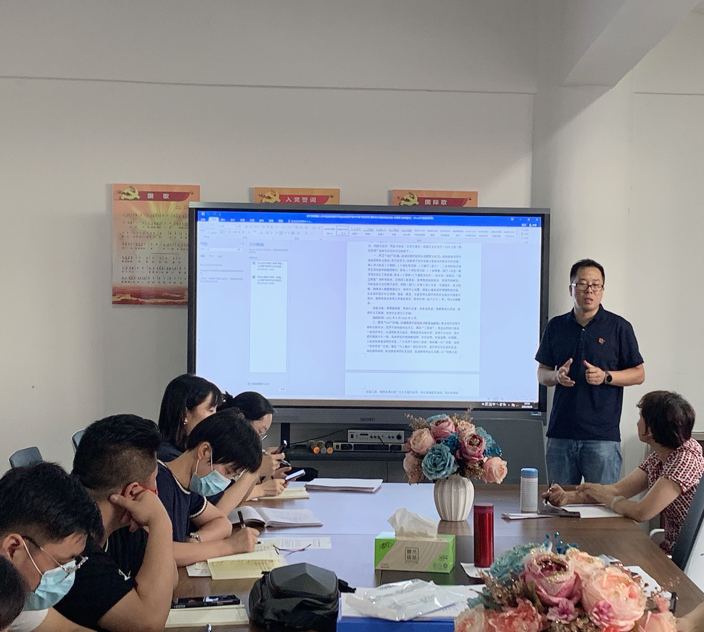 2021年8月26日下午三点半,学前教育学院二分部党总支在南校区一号楼413党员活动室,召开了2021年8月份党日活动。活动由朱明同志主持。