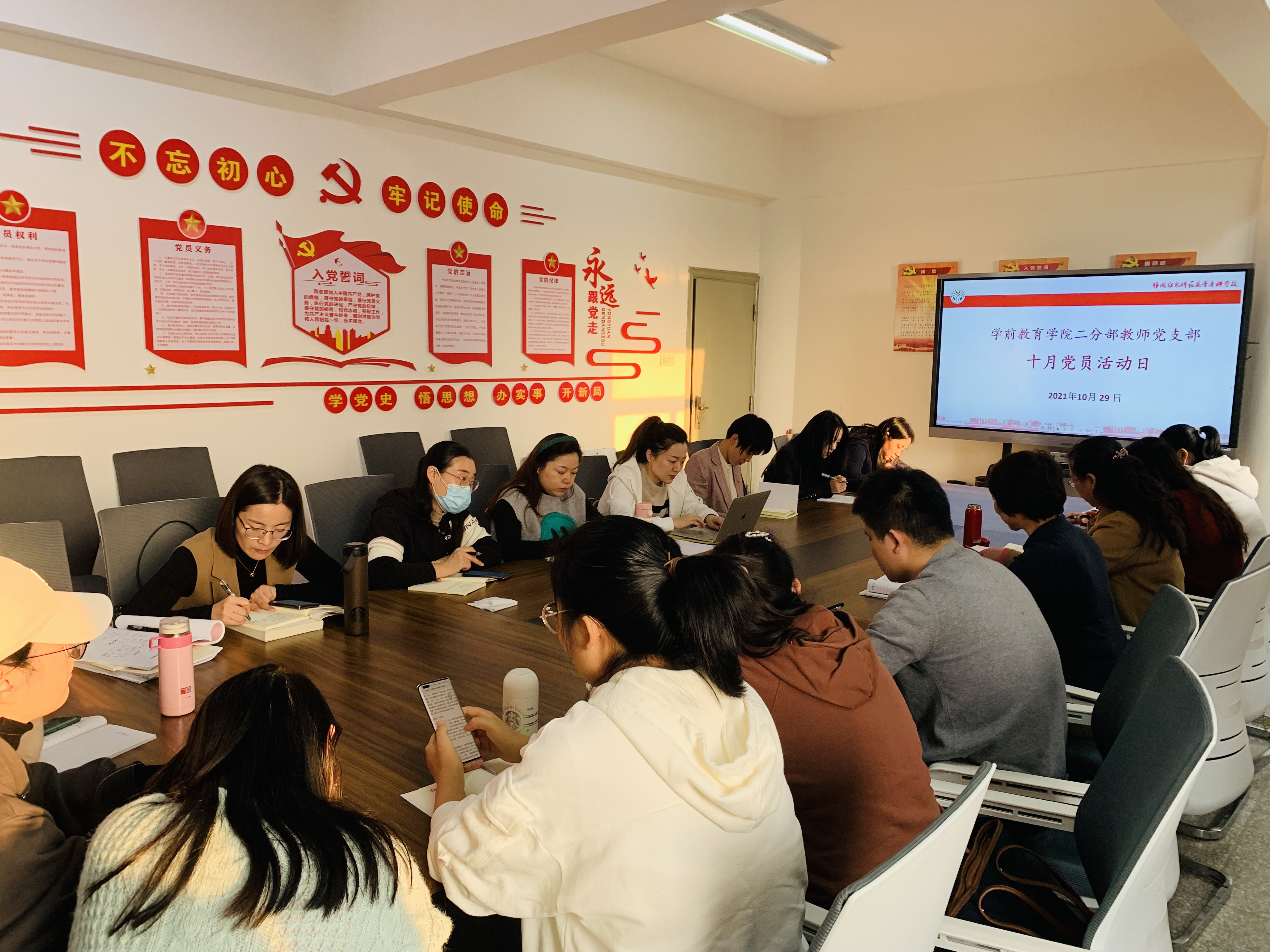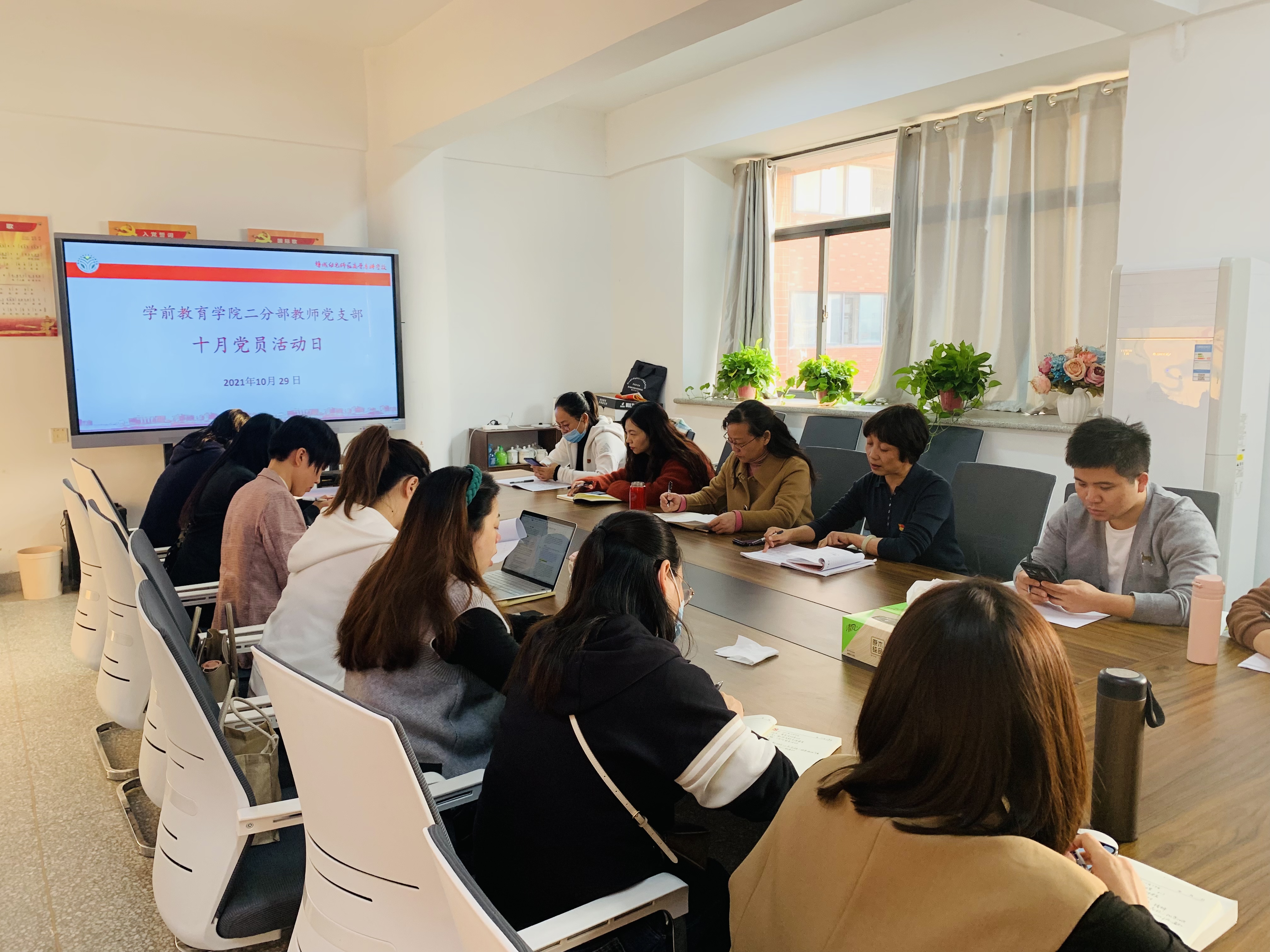 10月29日下午4:00,学前教育学院二分部教师党支部在学院党员活动室,开展以“发扬辛亥革命精神,做好评估中心工作”为主题的党员活动。会议由支部书记孙晓姝同志主持。
