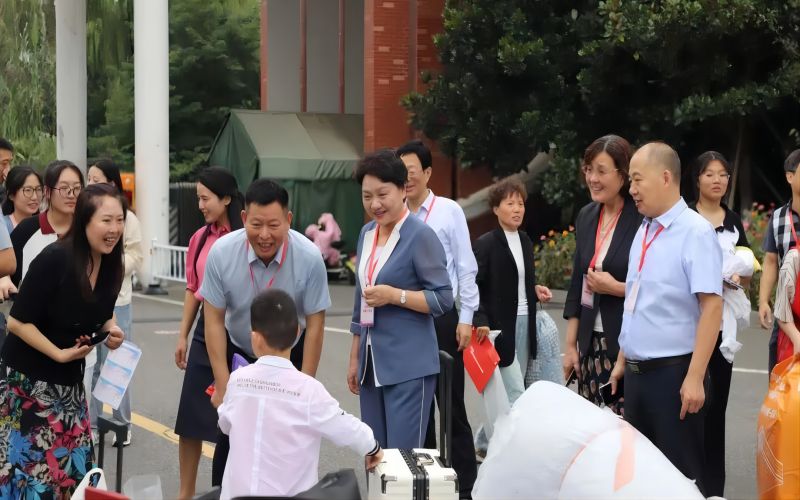 校门口,志愿者们帮新生搬运行李,指引方向。迎新点,工作人员帮助新生核实身份、办理报道手续。志愿者们热情地帮新生搬运行李。身穿红色马甲的师生志愿者用最饱满的热情和最周到的服务接待每位新同学。新生报到处,班主任们耐心为新生们讲解报到流程及注意事项,为新生答疑解惑。学校领导亲临现场,指导迎新工作。学院社团也加入迎新队伍,展示社团风采!