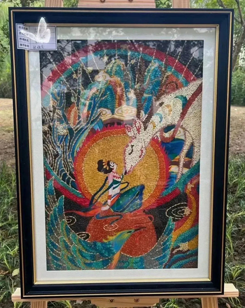 时维九月,序属三秋,正是丰收的季节,同学们用米稻谷物、各色豆类,制成了谷色谷香、豆趣横生的杂粮画。在创作中提升专业技能与审美能力,书写丰收的喜悦与青春的梦想,共贺丰收在望、国泰民安。