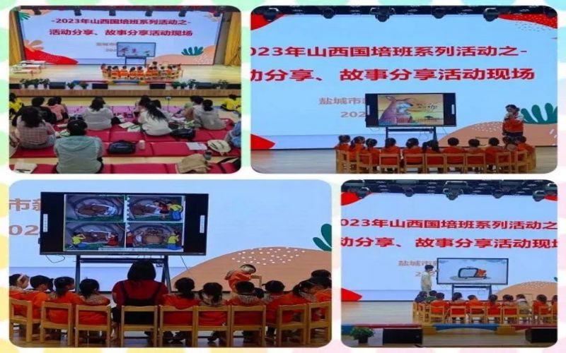 5 月 23 日盐城市机关幼儿园老师带来生动的课程《好大的蛋糕》,让孩子们通过讨论、探索、发现,感受到科学活动的快乐。在中班音乐课程《蚂蚁派对》中,孩子们可以跟随着节奏不断游戏,感受游戏带来的情景与氛围。在大班综合《美术馆里的数学》活动中,孩子们通过发现,提问,探索,创作,在绘画中感受数学的快乐,体会数学与美术,与生活的奇妙结合。一节节生动的课程分享,一个个美妙的课程故事,让我们看到幼儿园老师在课程与故事分享的探索中不断前行、不断发现、不断创新、在经验分享中让我们感受到幼教工作的任重道远!