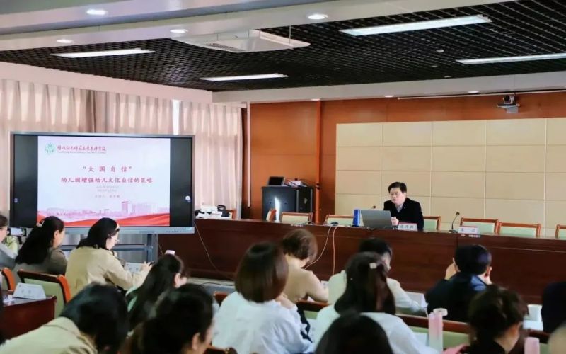 最美人间四月天,文化自信浸名园。4月9日上午,我们有幸聆听了江苏省“333高层次人才工程”中青年科学技术带头人、国培专家张丹枫教授的讲座《“大国自信”幼儿园增强幼儿文化自信的策略》,张教授在讲座中强调教育要培根铸魂,以文化人,培养现代中国人,他强调文化是思路、观念、行为价值观的综合体;分享了幼儿园增强幼儿文化自信的策略。张教授希望我们大家能有所学、有所得,努力实现自己在弘扬大国自信中的教育价值。