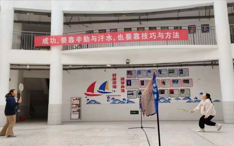 热爱羽毛球运动的同学聚在一起,他们相互学习、相互交流、共同进步,从而让更多的人热爱体育。每周三下午,“轻羽飞扬”社团正常开展活动。社长徐浩然细致周密的安排,有计划有步骤的状态下科学训练,提高学生技术水平并增强体质,做到全面发展。同学们扬起球拍,羽毛球在空中划过一道优美的弧线,在羽毛球场上肆意挥洒汗水。每一次的挥拍,都是美好青春的展望,每一次的跳跃,都是运动音符的旋转。
