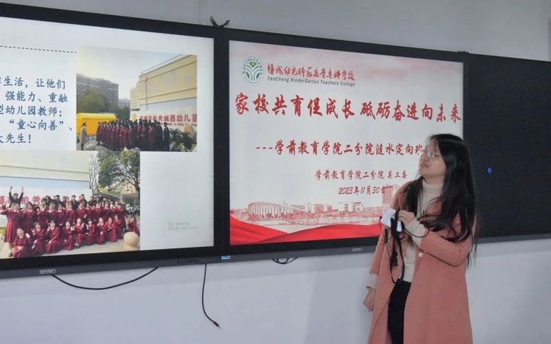 21级涟水班班主任任纬纬向家长们介绍学生入校以来的学习生活情况以及近三年的成长过程,并对近阶段的期中考试与家长做了分析和交流,提出了下一阶段的努力方向,和家长共同关注孩子各项证书的获取情况,为下一步考教师资格证做准备。