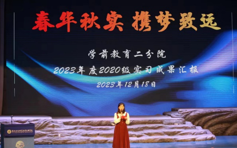 2023年12月18日下午4:00,学前教育学院二分院在鲁艺剧场成功举办实习成果汇报展。学院邓晓玲院长、许利芹副院长以及学前教研组专任教师和2020级全体学生、2021级优秀实习生参加了本次活动。