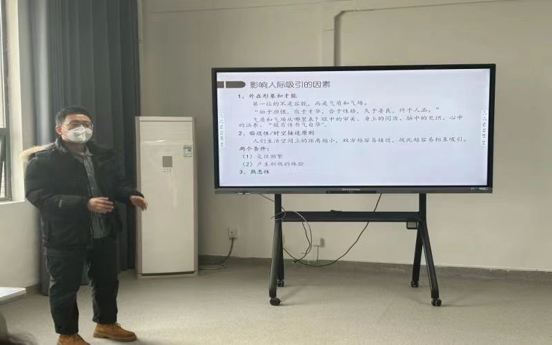 牛佳兴老师从“人际关系及其重要性”、“人际关系的发展阶段”、“影响人际吸引的因素及心理效应”、“如何改善和优化人际关系”、“宿舍关系”五大板块阐明人际交往也是一种艺术。人际交往对心理健康至关重要,它有助于我们建立良好的人际关系,提高情绪管理能力,以及提升应对压力的能力。