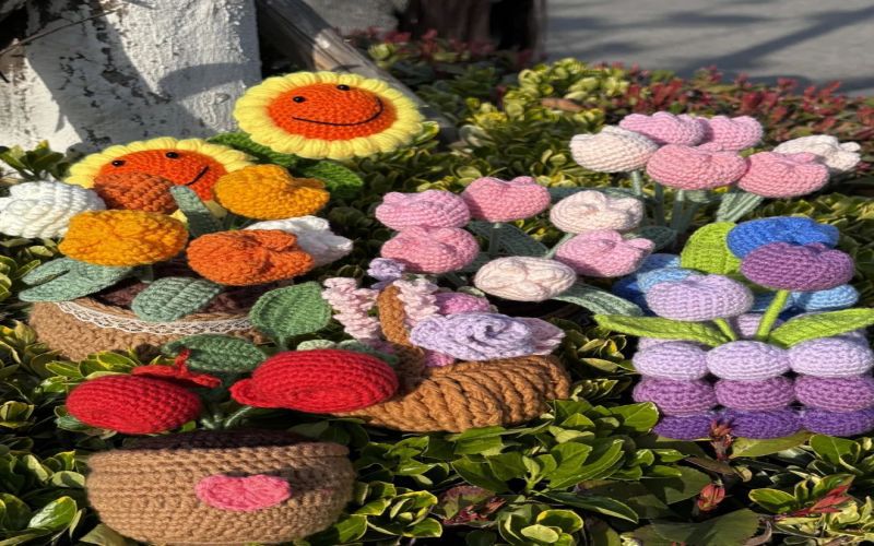 明媚春光下,一朵朵色彩明亮的针织花带着温馨与宁静,在同学们的手中灿烂盛开;一只只小羊小兔温顺乖巧,在草地里沐浴阳光。每一针每一线都如诗如画,细腻的钩织技巧让人陶醉其中。