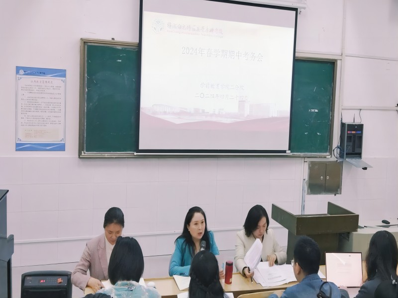 厉兵秣马敲战鼓,齐心协力谱华章。期中考试将至,为进一步规范考试要求,严肃考风考纪,保证期中考试顺利有序进行,学前教育学院二分院于4月24日下午3时整,在学海路校区一号教学楼阶梯教室2召开了2024年春学期期中考务会。学院邓晓玲院长、刘蕾副院长、许利芹副院长,以及学院全体任课教师参加了本次会议。