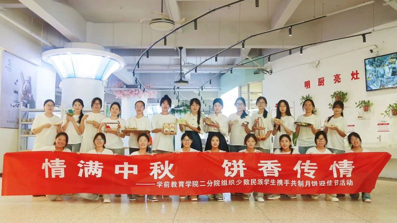 9月14日上午,为迎中秋佳节,学前教育学院二分院 “行知”劳动教育辅导员工作室教师组织学生在北校区食堂举办了“情满中秋,饼香传情”月饼制作活动,副校长葛红梅、学院院长邓晓玲、党总支书记张子丽、党总支副书记、副院长刘蕾、副院长许利芹和工作室部分教师参加本次活动。此次活动志在传承中华传统文化,弘扬劳动精神,促进学生全面发展。