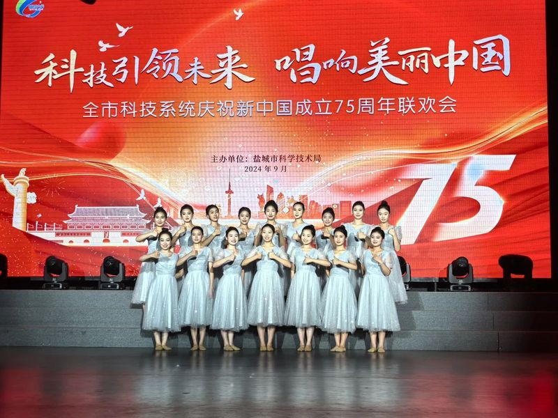 9月28日下午,盐城市科技局举行“科技引领未来 唱响美丽中国”庆祝新中国成立75周年联欢会,我校学前教育二分院大学生艺术团受邀参加,她们携舞蹈《和光同尘》,表达对新中国成立75周年的祝福,对新时代精神致以赞歌,向伟大祖国表达最崇高的敬意与最美的祝愿。
