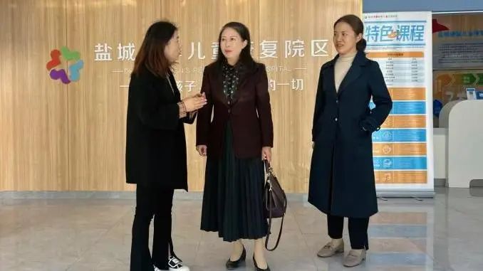 授牌仪式前,一行人参观了儿童康复院区的各层功能室。该院区2016年5月开展孤独症康复业务,为孤独症康复配套设置的科室有康复医学科、精神科、儿科、中医科等,是集综合指导、管理培训、人才培养和康复训练于一体的盐城市孤独症儿童定点康复医院。该院坚持医教结合,同时开办家长学校,与儿童康复并行,至今共接纳特殊儿童1000多名,入普幼、普小率逐年提升,为推动盐城市特殊教育及儿童康复事业的发展贡献了力量