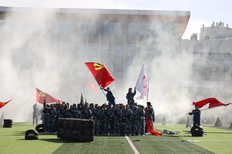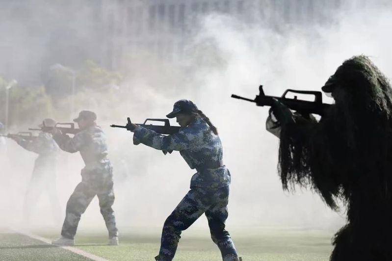 当战术行动开始,“敌人”乘着越野车、摩托车疾驰而来,学前教育学院二分院的学子们仿佛化身为英勇的战士。他们身着迷彩服,手握钢枪,眼神刚毅,观察四周,镇定机警。在教官的指挥下,迅速展开战术队形,匍匐前进、交替掩护、精准射击,一系列动作行云流水,展现出了高度的纪律性和团队协作能力。他们的身姿虽然稍显稚嫩,但那份勇往直前的气势却丝毫不输专业军人。每一个动作都饱含着汗水与努力,每一声口号都传递着他们的坚韧与决心。
