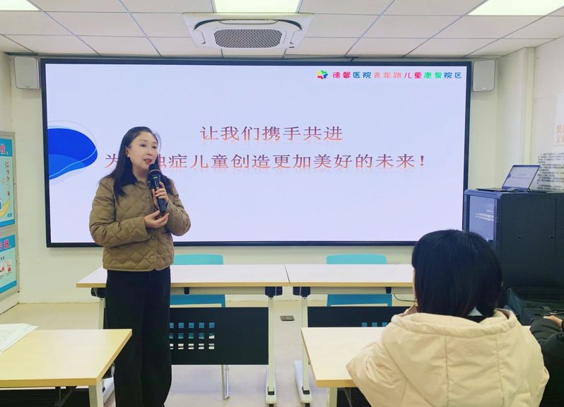 周老师为同学们带来了《孤独症康复教育——岗位实操技能解读》的讲座。他以深厚的专业造诣为基石,构建起本次讲座的坚实框架,从课堂流程、典型项目干预和教学策略及技巧三个模块向大家介绍了如何康教结合,为孤独症孩子做好个训。