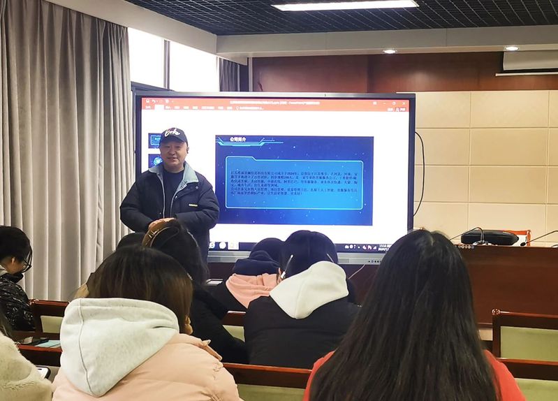 本次宣传会邀请江苏淮盛景澜信息科技有限公司的沈总主讲,带来了就业岗位资源,学子们有机会与沈总面对面交流,深入了解企业文化、岗位要求,为未来的就业提前布局,找到最适合自己的舞台。