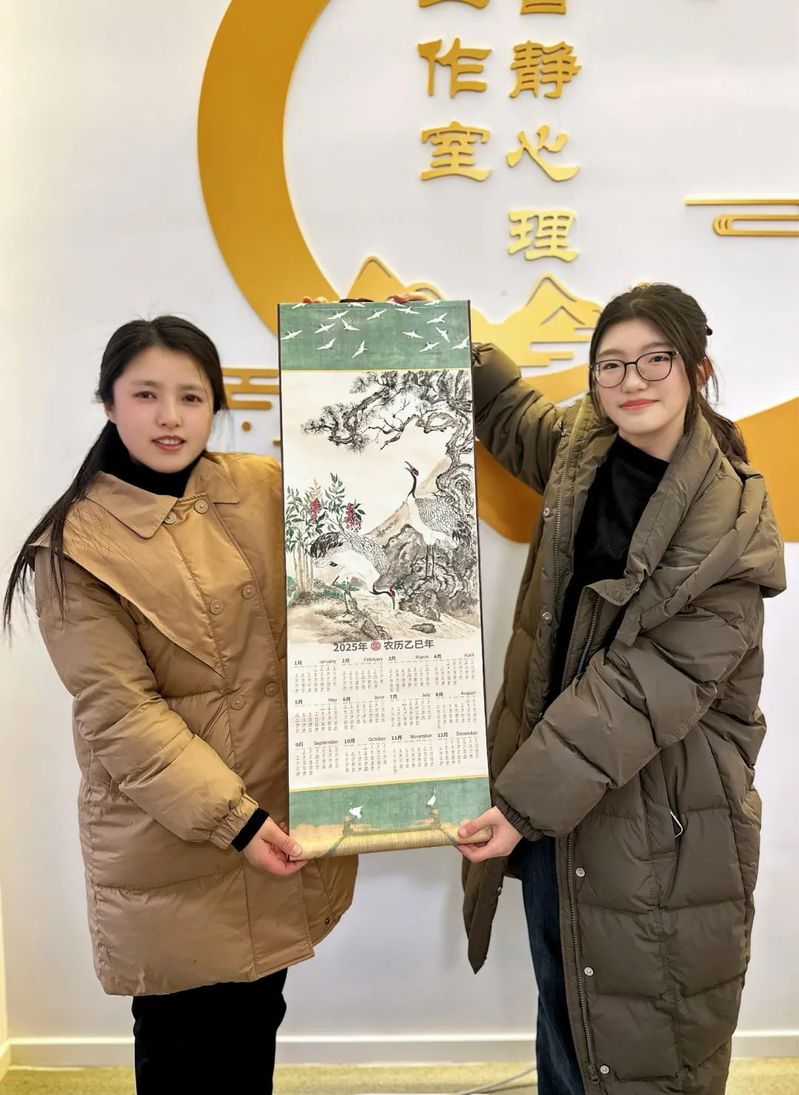 完成后,同学们迫不及待地将这份饱含着对时光珍视的日历送给同伴,精心地把日历张贴在宿舍墙壁上,欢声笑语回荡在房间里。日历上的每一笔,都成了提醒大家珍惜时光的珍贵符号,让小小的空间充满了对时光的珍视。油墨浸润的不仅是纸张,更是人与人之间的温度联结。这份手作日历,承载着劳动社成员们的心意,也传递着校园里的温暖。