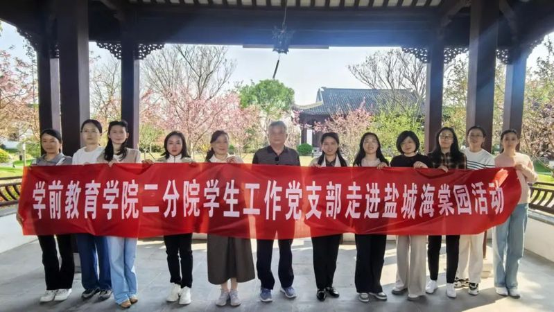 在“3.20心理健康周”的浓厚氛围中,为将党建工作与心理健康教育深度融合,3月26日下午,学前教育学院二分院学工党支部全体党员走进盐城中华海棠园,开展了一场别具一格的主题党日活动。此次活动特别邀请学校关工委秘书长朱文会,我院关工委常务副主任陈旭东出席。