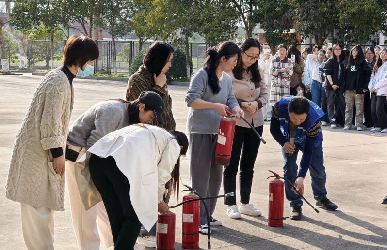 紧接着,活动进入了灭火器使用教学与实践环节。工作人员为大家详细讲解了灭火器的种类、适用范围以及正确的使用方法。随后,在专业的指导下,师生们纷纷上前亲自操作灭火器,对准模拟火源进行扑灭练习。这一环节不仅让理论知识得到了实践应用,更让每一位参与者都掌握了扑灭初期火灾的关键技能。