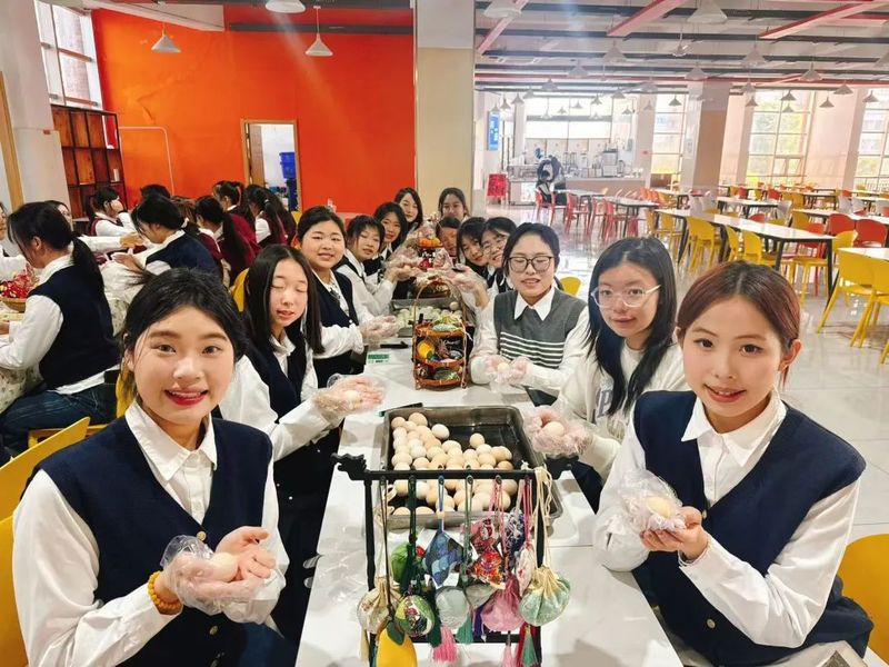 同学们领取了制作材料,包括彩色布料、香料、针线等。在老师的示范下,大家开始裁剪布料,缝制香囊的形状。有的同学选择了传统的菱形香囊,有的则尝试制作小巧的心形香囊。缝制过程中,同学们小心翼翼地穿针引线,虽然手法略显生疏,但大家都全神贯注,力求做到最好。当香囊的雏形逐渐显现时,同学们迫不及待地将香料装入其中,再将香囊口仔细缝合。最后,为香囊系上流苏,一个个色彩斑斓、香气四溢的手工香囊便完成了。同学们互相展示着自己的作品,分享着制作过程中的趣事,小小的香囊承载着同学们对传统文化的热爱与对美好生活的向往。