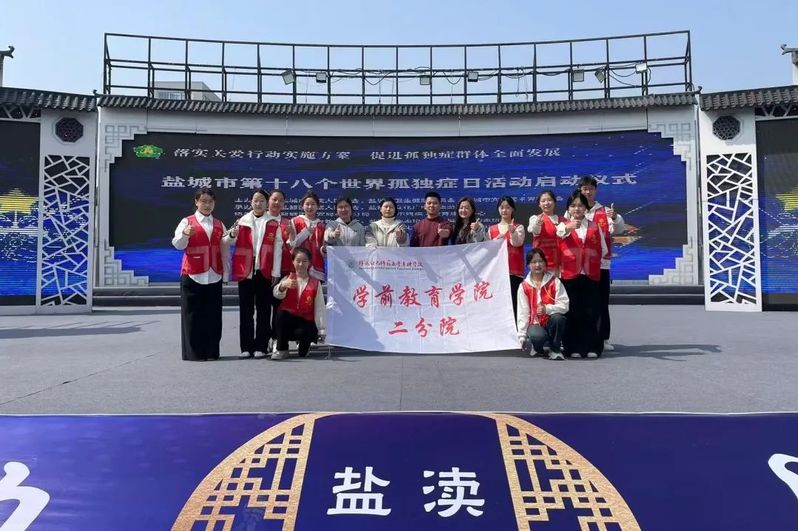4月2日上午,学前教育学院二分院老师陈蕾、吉轶、张天敬、周瑾带领特殊教育专业学生志愿者及表演团队参与了盐城市第十八个世界孤独症日活动,用我们的行动与热情,为孤独症群体送去温暖与希望。