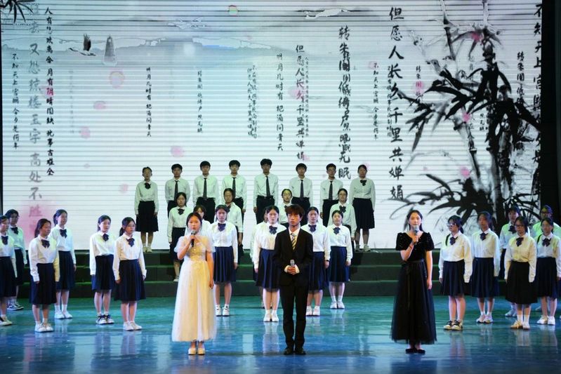 2402班和特殊教育(高)24班选取张若虚的《春江花月夜》,凭借富有感染力的诵读,配合轻柔音乐,将“江畔何人初见月?江月何年初照人?”里的哲思与浪漫娓娓道来,用声音勾勒出诗画交融的美妙意境。