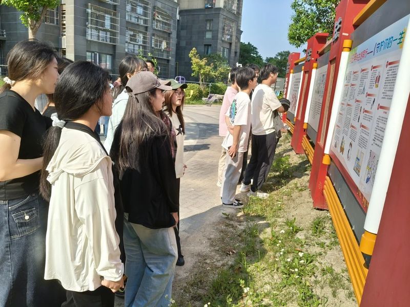 随后,同学们来到社区的法治长廊,参观了民法典的指示牌和宪法誓词碑,通过实物继续加深同学们对于民法典的认识。