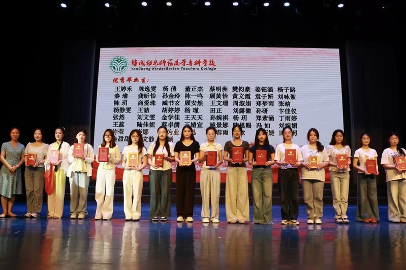 毕业生代表2012班的顾斯婕(响水定向生)和2001班的杨倩诚挚地发言,感谢母校的精心培养和对母校的深深祝福。她们深情回顾了在校学习生活的点滴,从专业技能的提升到师生情谊的珍贵,从校园活动的丰富多彩到成长路上的蜕变。她们表示,作为新时代的青年,将牢记母校“明德、健行、思源、致远”的校训,在奋斗中探寻青春的价值,在幼教岗位上践行教育使命,以实际行动回馈社会、报效祖国。