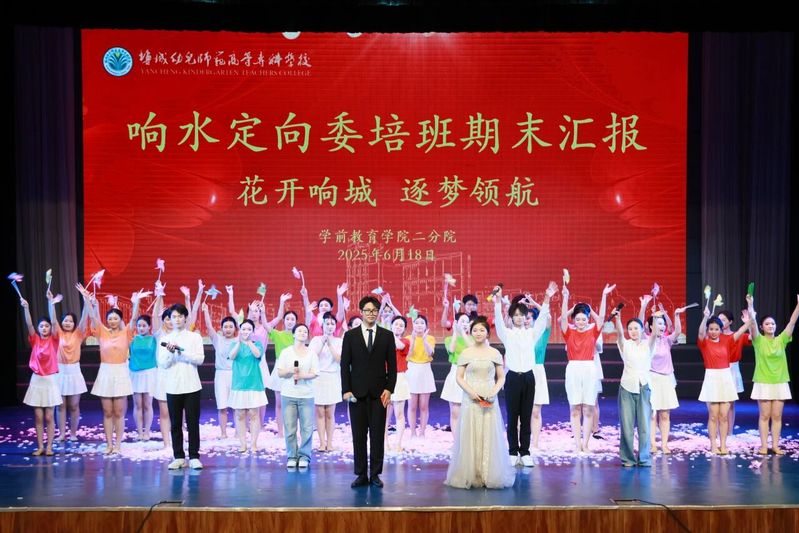 盛夏蝉鸣,硕果盈枝。为全面展现校地协同育人成效,充分彰显新时代学前教育学子的青春风采,近日,学前教育学院二分院响水定向委培班成功举办期末汇报演出。本次汇报以多元艺术形式为载体,将专业技能展示与教育初心践行深度融合,为观众呈上一场兼具专业性与感染力的视听盛宴。
