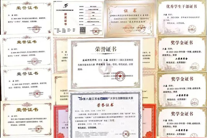 凭借优化后的学习方法,他的专业能力得到显著提升。在2024年江苏省师范生教学基本功大赛中,荣获一等奖。这份荣誉不仅是对他学习成果的认可,更坚定了他投身幼教事业的决心。此后,他以考编为新目标,系统钻研专业理论,通过模拟试讲、案例分析等方式强化实践能力。功夫不负有心人,2025年,他凭借扎实的专业功底和科学的备考策略,成功考取盐城市幼儿园编制,向着成为优秀幼儿教师的目标迈出坚实一步。