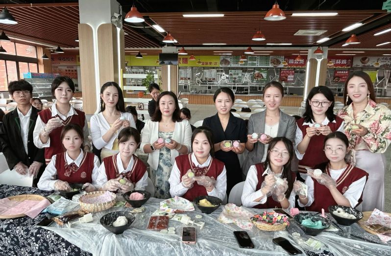 看!同学们用灵巧的双手调配成樱花粉、抹茶绿、薰衣草紫、奶油黄、蒂凡尼蓝红等多种颜色,煞是好看!当印有“月兔”“花朵”“福”纹样的月饼从模具中脱出,浅尝一口,口感Q弹且冰凉,小小的身体里包裹着舌尖上的美味。此刻,空气中弥漫的不只是饼香,更是寄托着对“家团圆、国安康”的美好期许。