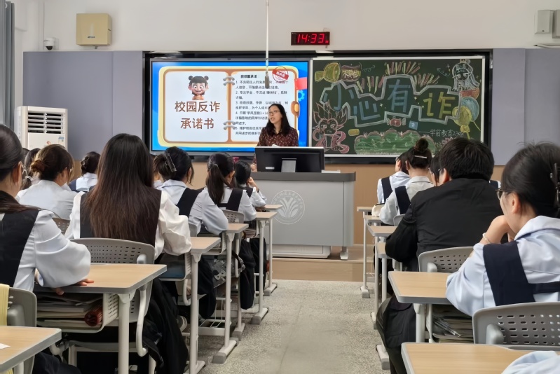 班会伊始,各班班主任结合近期校园及周边高发的诈骗案例,用“以案说法”的方式揭开诈骗分子的“伪装”。从常见的“刷单返利”“游戏账号交易”“冒充客服退款”,到针对学生群体的“校园贷”“助学金诈骗”等,班主任们细致拆解每类骗局的套路流程,重点强调“天上不会掉馅饼”的核心逻辑,提醒同学们警惕“小利诱惑”和“紧急催促”,遇到可疑情况第一时间联系老师或家长,切勿盲目转账。部分班级还播放了防诈骗宣传短片,真实的案例画面让同学们直观感受到诈骗的危害性,进一步绷紧了“防骗弦”。