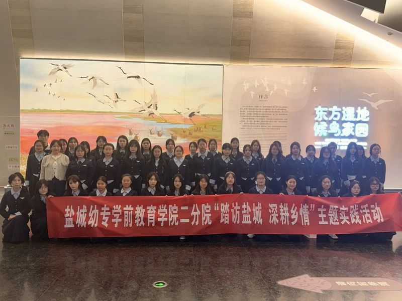 11月12日的盐城,风里裹着初冬的清冽与湿地的湿咸,特教25班的同学们循着潮声而来,以“踏访盐城 深根乡情”为主题,走进了盐城黄海湿地博物馆。这座镶嵌在世界自然遗产核心区的建筑,以“湿地之魂”为笔,铺展开一幅跨越海陆的生态长卷——外观如潮起时拱起的脊背,肌理似芦苇交织的脉络,玻璃幕墙映着天光云影,仿佛从滩涂中自然生长而出,既藏着湿地的灵秀,又载着保护的使命,将千万年的生态变迁、万千生灵的繁衍故事,都浓缩成一份厚重的“自然答卷”。同学们挺拔的身影与专注的目光,为这份答卷添上了最鲜活的少年注脚,也让乡情在与湿地生灵的对话中悄然扎根。