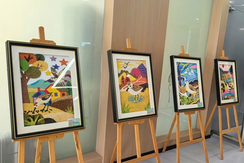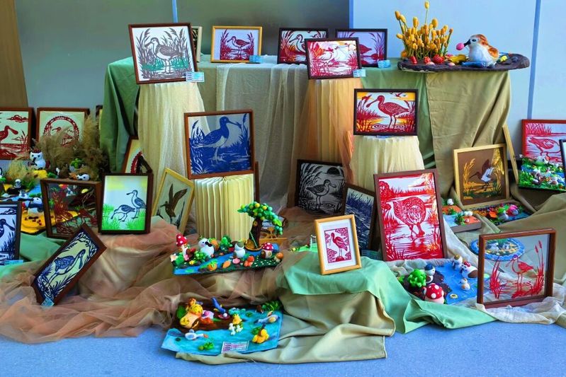 我院师生以匠心传生态之美,将珍稀鸟类勺嘴鹬的灵动身姿与自然材料相结合融入多元创作,带来了琳琅满目的文创作品。粮食画的颗粒肌理、羽毛画的灵动飘逸、棉絮画的柔软治愈、麦杆画的自然肌理、剪纸的精巧镂空、水彩画的清新明快、超轻粘土的立体萌趣……多种艺术形式各展所长,让勺嘴鹬的形象在指尖焕发别样生机。