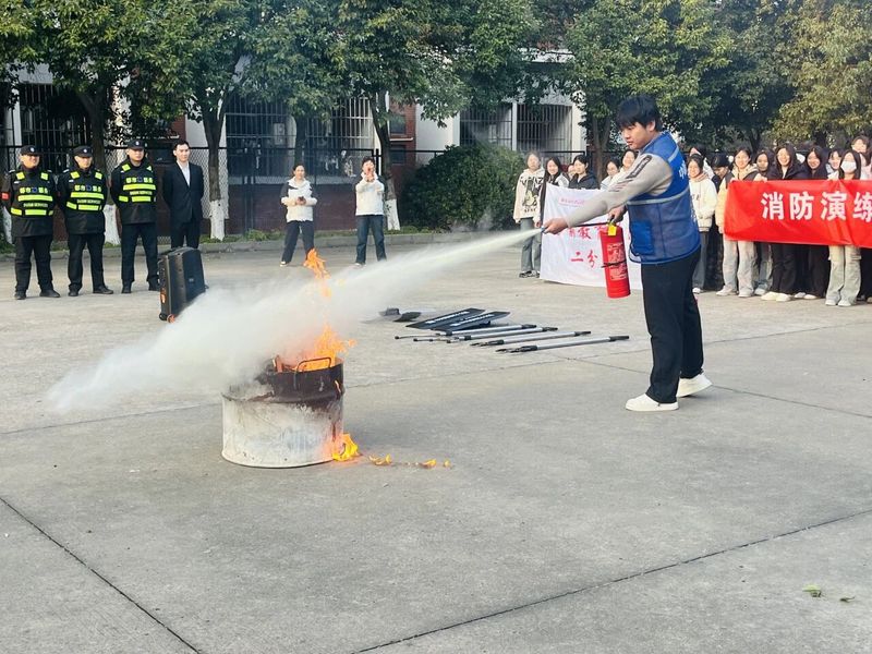 随后,活动步入灭火器实操教学环节。工作人员细致讲解了灭火器的类型、适用场景及规范操作流程,在专业指导下,师生们依次上前实操,对准模拟火源开展灭火练习。此环节既实现了理论知识的实践转化,也让每位参与者熟练掌握了初期火灾的扑救核心技能。