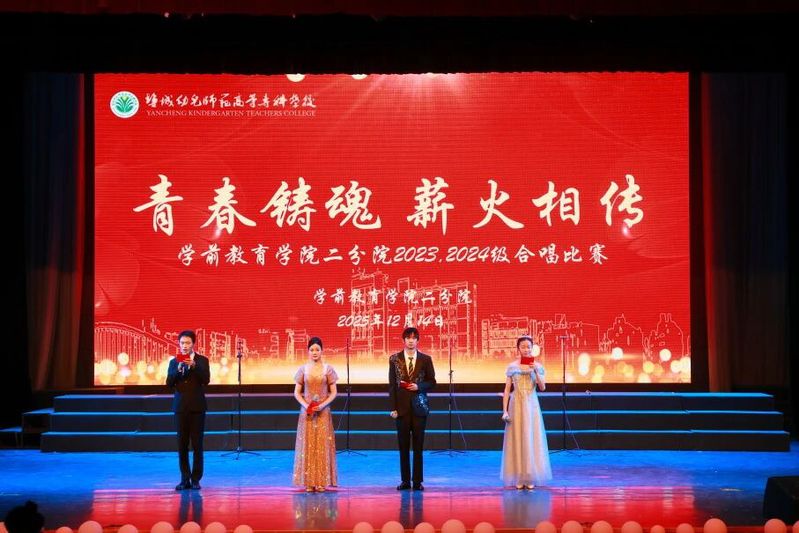 为传承和弘扬爱国主义精神,厚植青年学子的家国情怀,激发青春奋斗力量,12月18日下午,我院在海洋路校区鲁艺剧院举办“青春铸魂,薪火相传”合唱比赛。学前教育专业23级、24级同学们齐聚一堂,用歌声诠释初心,以旋律传递信仰。学院领导及音乐组全体老师担任本次比赛评委。